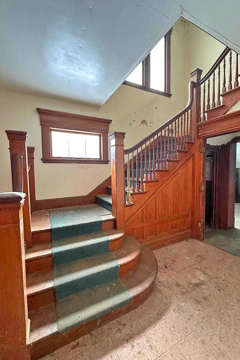 Don’t judge a book by its cover. Judge it by its staircase, fireplaces and stained glass!