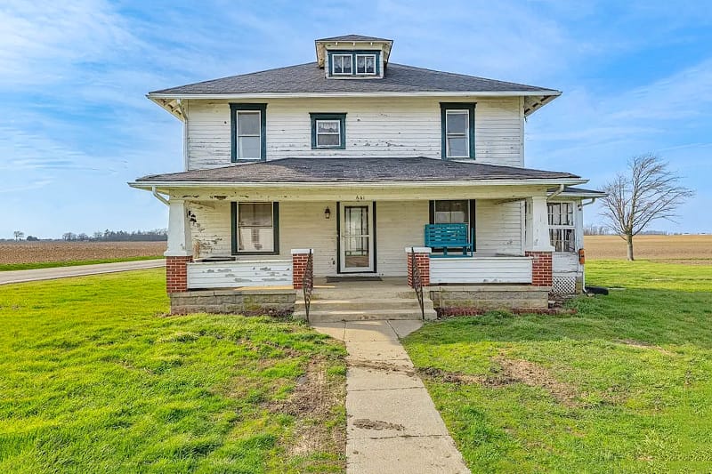 This American Foursquare style property provides a rural setting on a 0.79-acre lot with significant potential for customization. The home features five bedrooms, one full bathroom, and one half bathroom across 1,802 square feet of living space. Throughout the interior, original woodwork remains, highlighting the traditional American Foursquare architectural style. Moving to the second level, the floor plan contains the remaining four bedrooms. A full bathroom is centrally located upstairs among all the bedrooms, featuring a standard bathtub and shower combination. Outside, the exterior spaces include a large, mostly flat yard that maximizes the 0.79-acre lot. The backyard area is enclosed by a newer fence, clearly defining the property boundaries and outdoor usable space for various activities. The property's rural location provides a quiet environment while maintaining regional connectivity. The home is centrally positioned between Dayton, Cincinnati, and Columbus.