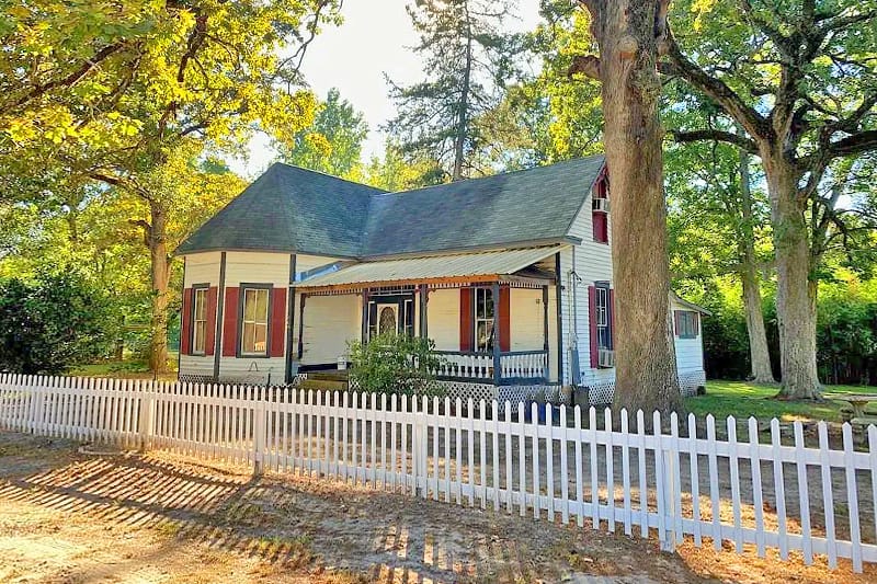 This home boasts all the character that comes with historic homes! Built in 1920, the brick home is situated on a corner lot with plenty of space. The large backyard encompasses the side of the house and is fenced. There is plenty of room for kids and or pets to run and play at this home. Large pecan and pine trees compliment the property and you can enjoy the view from the sunroom. The home has three bedrooms and one and a half bathrooms for a total of 2,274± square feet making it a perfect fit for any growing family. It has a large eat-in kitchen with a separate dining room, which opens to the living space that features a wood burning fireplace.