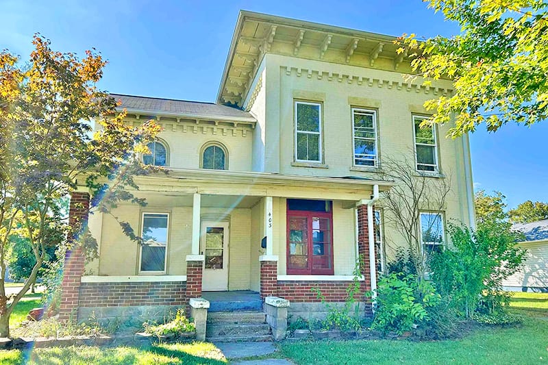 This one has porch windows that stretch from the floor to the ceiling. Which is cheap old house gold!