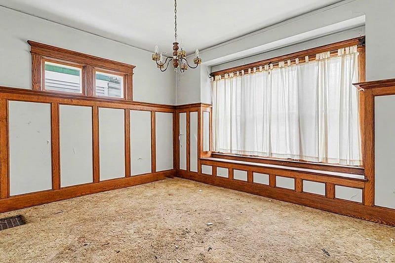 Gah! That front doorway is just exquisite. The interior has seen better days, but the mantels and chunky original trim will make it all worth it!