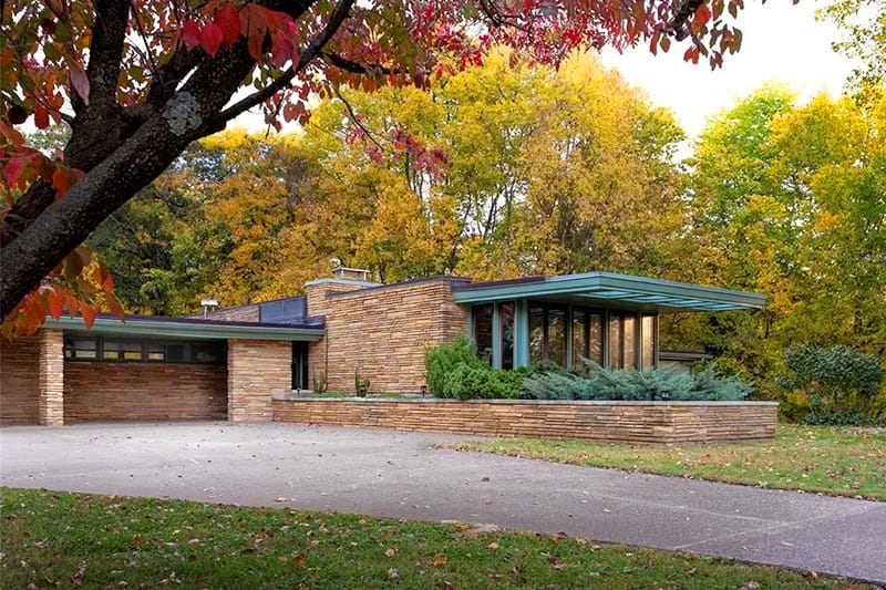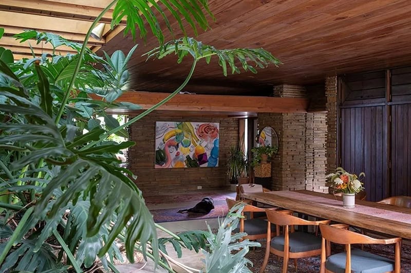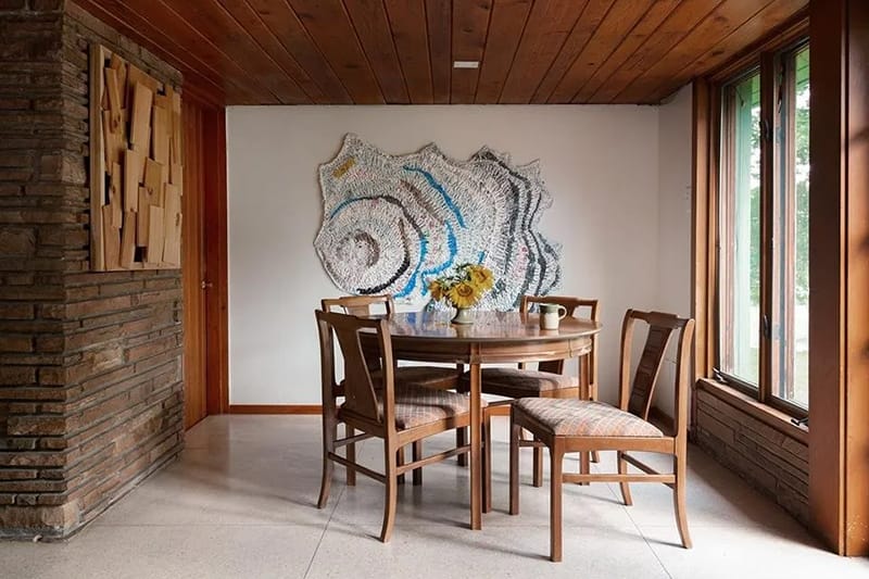 1952 mid-century prairie-style ranch by noted local architect John Boardman on 3+ private acres. Set privately among mature trees on over three acres within the Alma Schrader school district, now available for the first time in many years. Reflecting classic mid-century principles with original architectural details preserved throughout. Spanning 4,500+ sq ft, the single-level home includes four bedrooms, three full bathrooms, two dining areas, two sitting rooms and a wet bar. Stone surfaces extend from exterior to interior, while terrazzo floors and wood carsiding ceilings run throughout the living areas. Large windows, some wall-spanning, others clerestory, flood the home with natural light and frame views of the wooded property. Bringing the outdoors in, the formal dining room features a 19ft long raised indoor garden. Original built-ins include three built-in sofas, extensive custom cabinetry and storage closets, and a dedicated wine storage cabinet. Two gas fireplaces anchor the main living spaces, and mini-split systems provide heating and cooling to primary areas. Restoration efforts have reintroduced previously concealed windows, preserving the home’s architectural intent while leaving opportunities for thoughtful continuation. Outdoors, the property features an original concrete swimming pool, fenced in backyard and an outbuilding with attached lean-to for mower and equipment storage. Approximately 1/4 mile from Kiwanis Park, this estate offers rare privacy within city limits. At the property line is a small historic home on a separate nearly one-acre parcel, available for purchase separately.