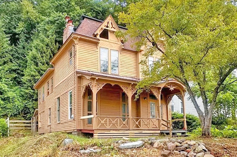 Looking for a historical restoration? This Stick Victorian in Little Falls NY may be your next home. Popular between 1860 and 1890 and built predominantly in wood, there are few pure examples of the style remaining in urban areas. Of the many architectural styles prevalent in the United States during the Victorian era, the Stick Style was the most expressive of a building’s underlying structure. Decorative wood trim, called stick work, was applied to the exterior to emphasize the basic wood frame structure underneath. This one is ready for your ideas and love to make it back to what it was!!!! With its steel roof and newer furnace, the property boasts a solid foundation for restoration. Although updates are required, much of the original construction remains evident, offering a chance to infuse modern conveniences while preserving its historic charm.