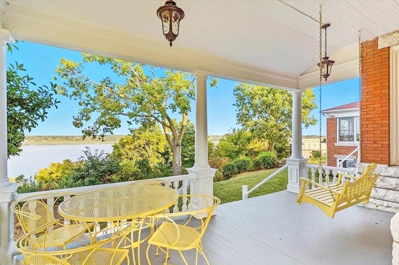 This stunning home is perched on a bluff and boasts interior woodwork to die for, plus a breezy, waterfront porch!