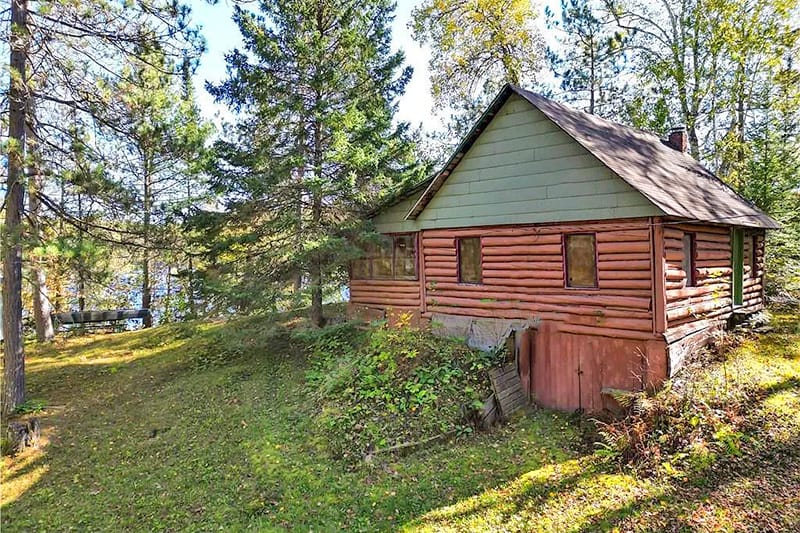 A lakefront log cabin!